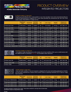 Digital Projection, a pioneering video projector manufacturer, designs and manufactures award-winning 3-chip and single-chip DLP® projection systems for a wide range of applications. A pioneer of DLP projection, home to some of the industry’s most exciting new talent, Digital Projection focuses on the singular goal of creating tomorrow's solutions to today's challenges. Its list of world-firsts is without comparison, including the first to deliver high-brightness laser phosphor and 8K DLP projectors, as well as 120Hz LED walls, and the company is known for always being driven by the needs of its customers